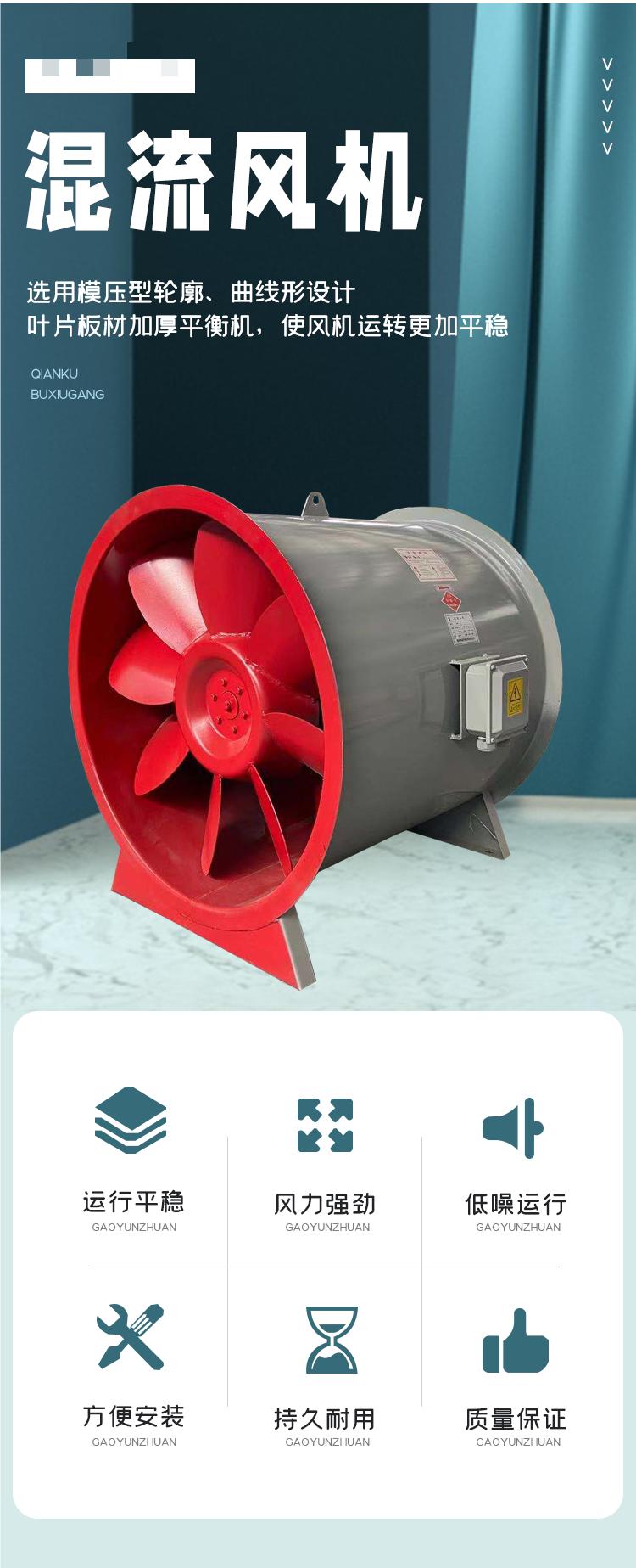 軸流風機和離心風機之間的風機,混流風機的葉輪讓空氣既做離心運動又做軸向運動,殼內空氣的運動混合了軸流與離心兩種運動形式,所以叫“混流”。